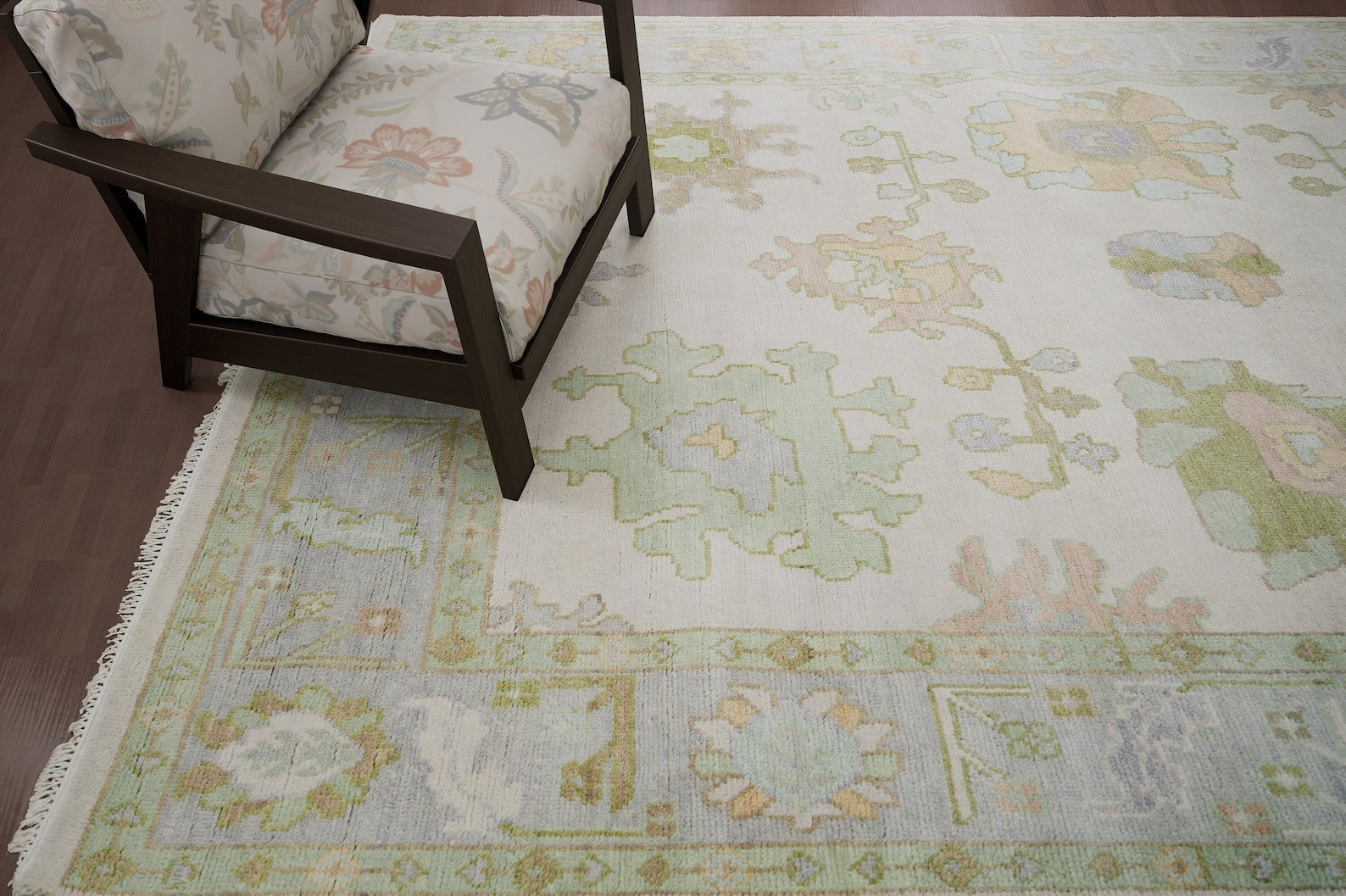 سجادة منطقة باللون الكريمي، سجادة أوشاك الحديثة ذات اللون الأزرق والأخضر