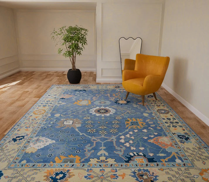 سجادة أوشاك باللون الأزرق والأبيض سجادة أوشاك الحديثة مقاس 9 × 12 سجادة شرقية